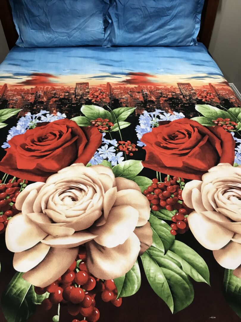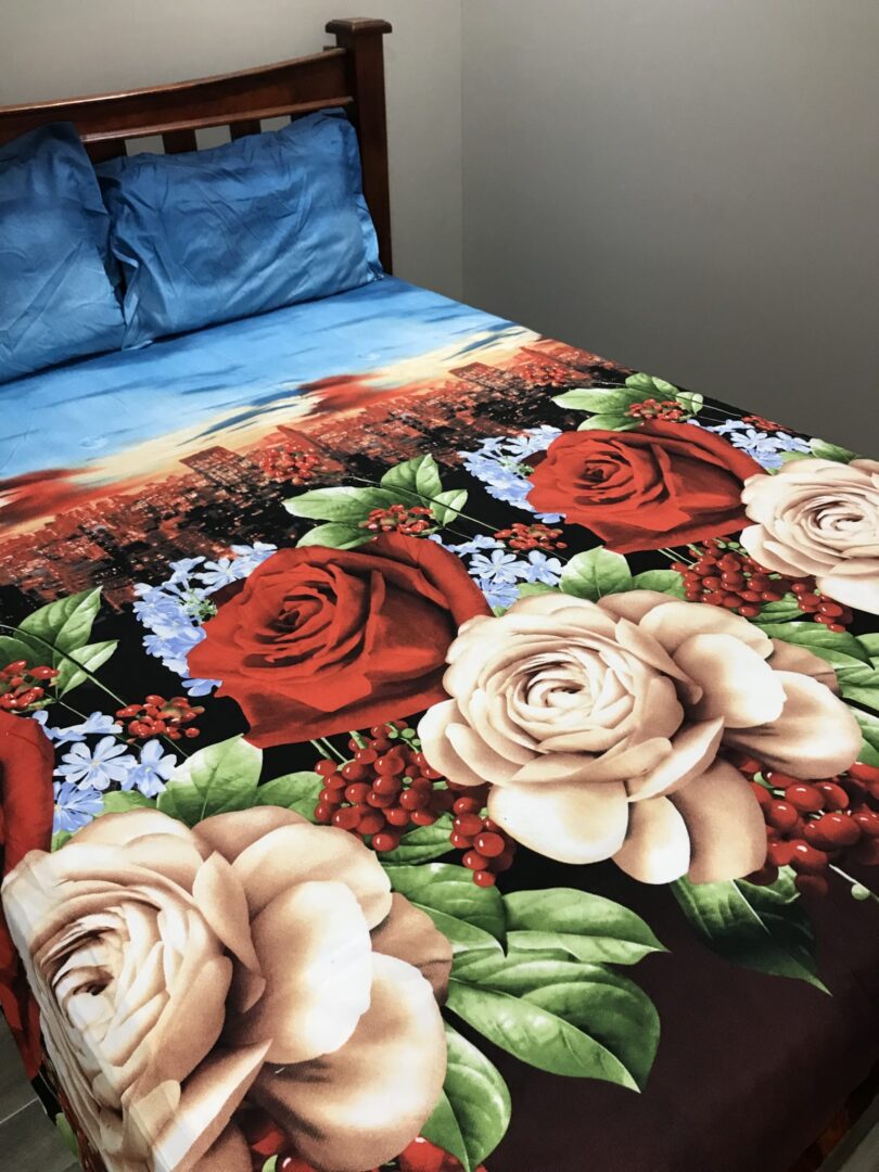 Beautiful king size quilt cover and bedsheet set. Set includes-one bedsheet, one double sided quilt cover and two pillow cases. For more information or any queries please feel free to contact us.